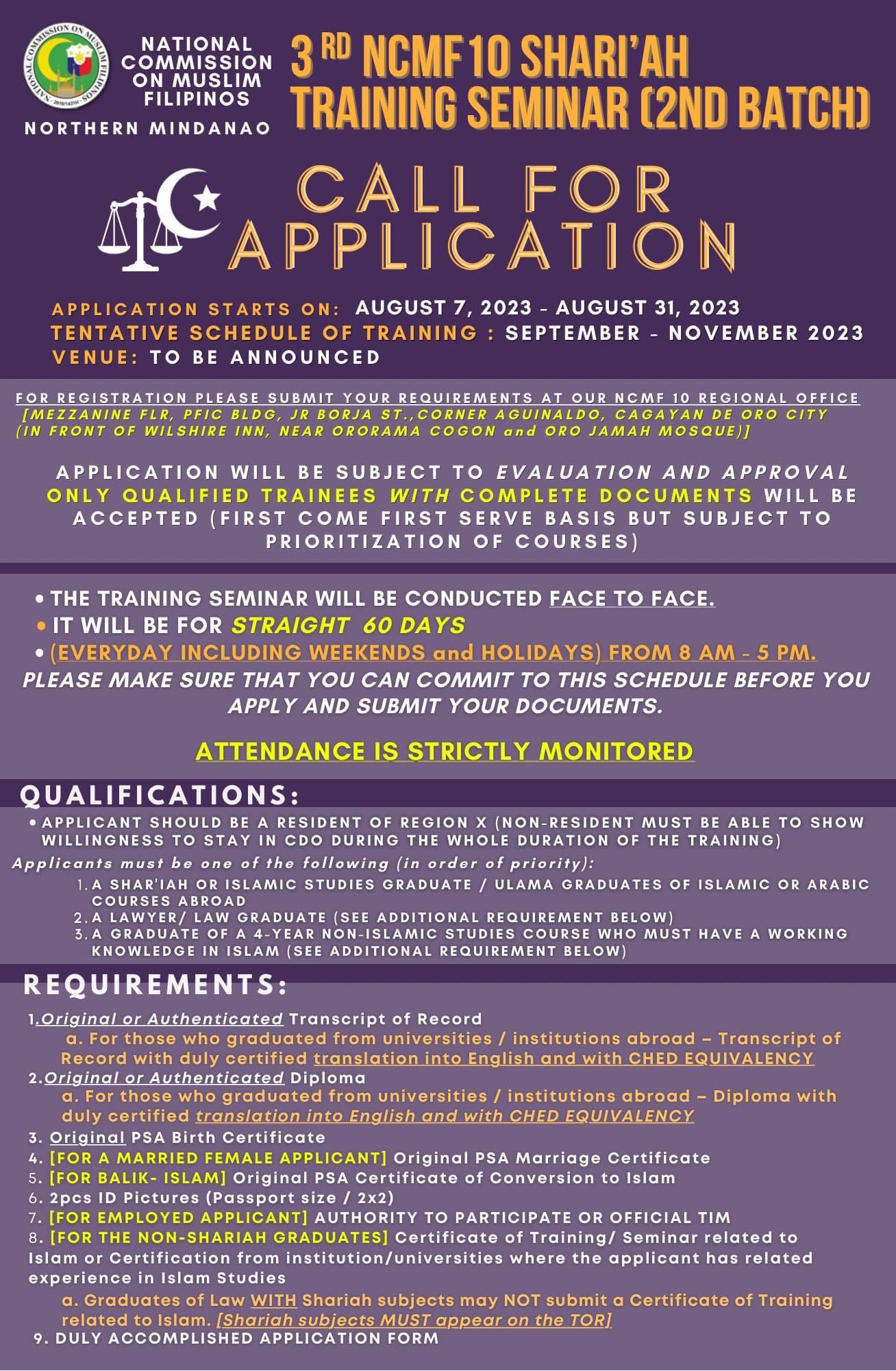 The 2nd Batch of training for the 3rd Series of NCMF10 Shari’ah Training Seminar is now open.